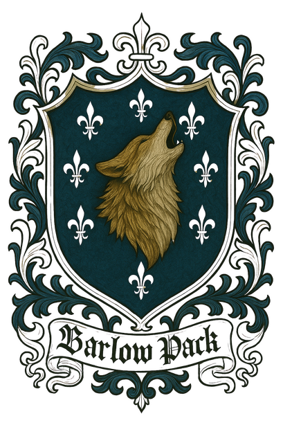 O nome Barlow (do inglês antigo bere — cevada — e hlāw — colina ou monte) foi adotado pela família em meados do século XII, quando o título de Lorde da Colina da Cevada tornou-se nome e símbolo da Casa Barlow em Yorkshire, Inglaterra.A Casa Barlow nasceu de uma longa linhagem de caçadores — homens forjados para enfrentar tanto as feras das florestas. O Barão Harold Barlow, senhor das terras e do castelo, teve dois filhos com sua esposa Mariam: Edgar e Edmund.A tragédia da família Barlow aconteceu em meio à guerra contra a Escócia. Nessa época, Edgar já era casado com Isobel de Bruce, filha bastarda da Casa Bruce e meia-irmã de Robert the Bruce, o futuro rei escocês. A união fora vista como aliança estratégica pelos Bruce, acreditando que lhes traria vantagem na luta pela independência. Mas Harold, fiel à Coroa inglesa, quebrou o pacto e jurou lealdade a Edward I, o rei da Inglaterra.Enquanto os homens estavam em campanha, a desgraça caiu sobre o lar. Margery, esposa de Edmund, foi levada por um novo senhor da região: o enigmático Barão Von Harrow. Von Harrow não era apenas um nobre — era um vampiro milenar, temido e odiado. E agora, tornara-se inimigo pessoal, pois havia tomado sua nora.Movido pela fúria, Edmund reuniu seus irmãos e os melhores homens, marchando contra o vampiro. Mas a investida foi sangrenta: muitos caíram diante das forças do Barão. Na ânsia de recuperar sua esposa, Edmund matou um dos mais fiéis guardas do vampiro e fincou-lhe a cabeça numa estaca diante dos portões do castelo. O recado era claro — e foi o suficiente para provocar a ira de Von Harrow.Naquela noite, a resposta veio. O Barão marchou até o castelo Barlow. Edgar, pressentindo o perigo, ordenou que os criados escondessem seus filhos e mulheres nas passagens secretas. Mas Isobel recusou-se a fugir. Teimosa e corajosa, acreditava que poderia ajudar — e que Margery precisaria dela.O que se seguiu foi o fim de uma era. Von Harrow atacou com brutalidade, transformando um a um em vampiros. Edgar e Isobel sucumbiram à sede. Edmund, no entanto, foi o último: diante de todos, o Barão o obrigou a beber do sangue de Margery. Ela morreu em seus braços, levando com ela o filho não nascido. Apenas um foi poupado: Lord Harold, que assistiu à ruína da própria linhagem.Harold viu seus filhos e sua nora tornarem-se monstros: vampiros. E, ainda que o sangue os unisse, ele jurou caçá-los — acreditando que, ao destruí-los, estaria libertando-os do inferno, e desse juramento nasceu a Ordem Barlow.A dor se espalhou como sombra. Edgar e Isobel foram dilacerados pelo peso de abandonar os filhos. Edmund, condenado pela culpa de matar a mulher que amava. Todos foram submetidos ao jugo do tirano Von Harrow, vivendo quase cinquenta anos de escravidão e tormento.Mas em 1347, a revolta finalmente incendiou a noite. Os irmãos Barlow, unidos a outros vampiros oprimidos, arquitetaram um motim. O Barão foi derrotado, e seus seguidores dizimados. Nas cinzas do tirano nasceu o Clã Barlow, com Edgar proclamado Príncipe, líder de uma nova era. O castelo do antigo Von Harrow tornou-se sede e lar do clã. Com o tempo, disfarçado como museu, tornou-se também fonte de renda e fachada para sua crescente influência.Enquanto isso, nas terras mortais dos Barlow, Harold fundava outra linhagem. Treinou seus netos para o novo legado dos caçadores, usando a memória dos próprios filhos como alvos a serem caçados um dia. Assim, a Casa dividiu-se: de um lado, vampiros que buscavam redenção no clã; de outro, descendentes humanos que abraçaram o aço e a fé da caça.Mas o destino dos Barlow com os vampiros ainda não tinha acabado, Eadric, filho caçula de Edgar e Isobel, treinado para caçar seus pais, virou vitima também do Barão Von Harrow.Séculos se passaram. Em 1783 e 1786 nasceram os irmãos Thomas e Tristan Barlow. Thomas manteve viva a tradição de caçar. Mas em 1970, o destino rompeu com a velha ordem quando Jeremy Barlow, descendente da linhagem caçadora, apaixonou-se por Patricia, portadora da maldição da licantropia. Pelo amor, abandonou a caça — e assim nasceu o primeiro lobisomem Barlow e assim nasceu o que viria ser a Alcateia Barlow.
